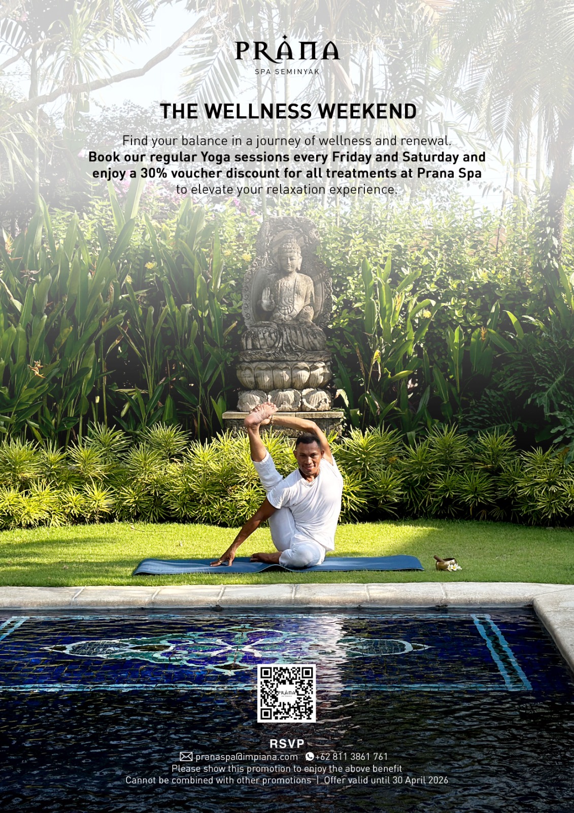 Enhance your journey with our signature experiences. The Bloom & Glow package (240 minutes) combines a plunge pool ritual, steam, sea salt body scrub, Vichy shower, signature massage, anti-aging facial using Sensatia Botanicals products, and a blissful flower bath – the ultimate head-to-toe rejuvenation. For a shorter yet deeply restorative escape, the Ayurvedic Simple Bliss (120 minutes) pairs a signature body massage with the ancient Shirodhara ritual to melt away stress and bring harmony. Whether you seek complete indulgence or a moment of serenity, Prana Spa offers a transformative escape that makes it one of the most iconic spas in Bali. See the Spa menu HERE